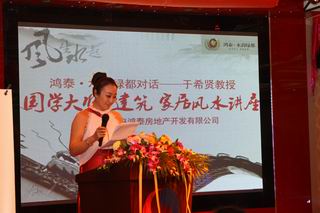 膠州市北京路鴻泰房地產(chǎn)開發(fā)有限公司開發(fā)水韻綠都高層住宅區(qū),邀請了世界有名的風(fēng)水大師于希賢,面向老客戶和房地產(chǎn)策劃銷售代理舉辦的一場風(fēng)水大會,期間有古箏、茶藝、插花等表演,還穿插了搖號抽獎,中獎?wù)邥@得購房優(yōu)惠卡