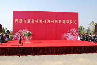 北京物美商業(yè)集團對家鄉(xiāng)回報,出資140萬元為咱們西扭河頭村建造了華美、壯觀的牌樓以及具有現(xiàn)代化氣息的標志性雕塑,特舉辦了牌樓剪彩儀式